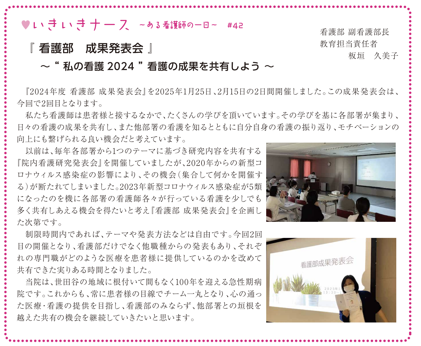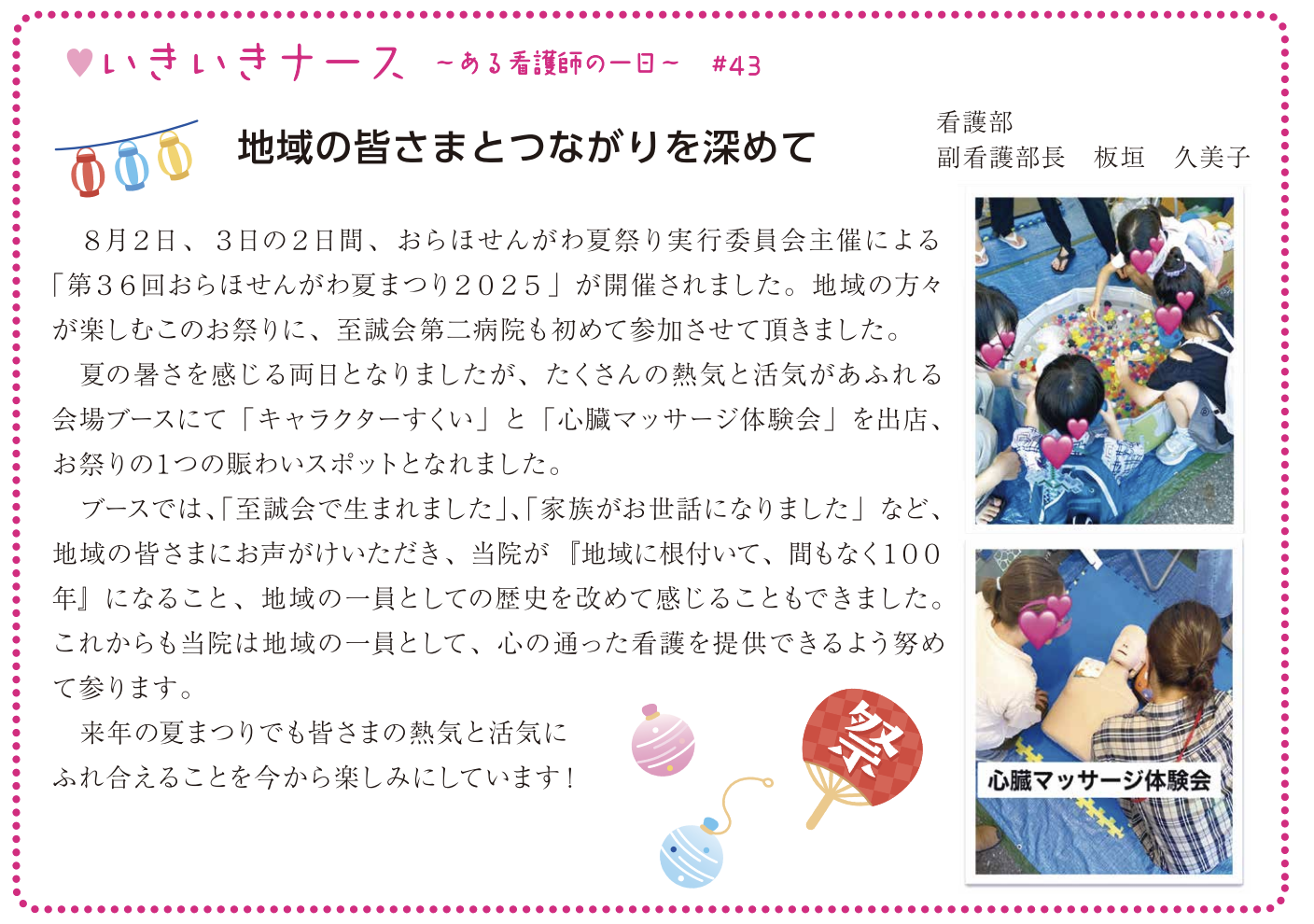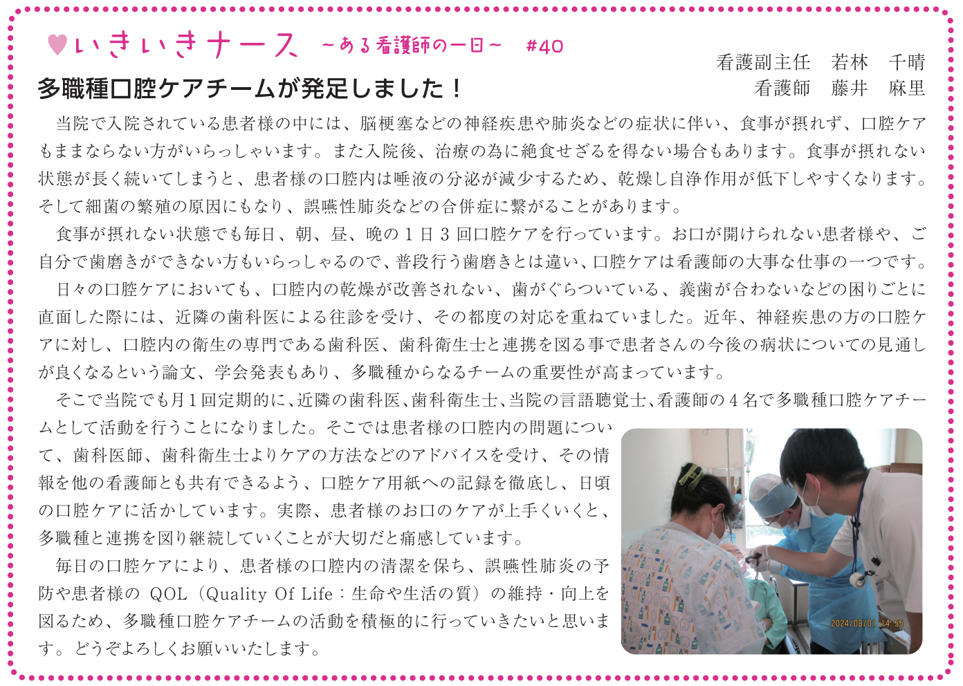 機関誌SHISEIで連載させていただいている「いきいきナース」では”ある看護師の一日”として